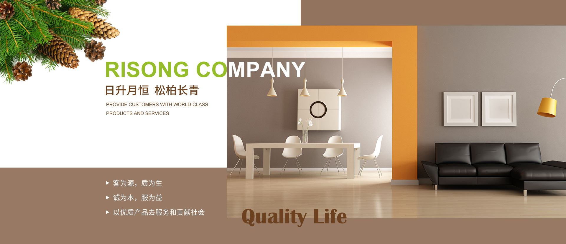 大連日松將一直秉承“以優(yōu)質(zhì)產(chǎn)品去服務(wù)和貢獻社會”的經(jīng)營宗旨;“客為源,質(zhì)為生、誠為本、服為益”的經(jīng)營理念;達到“使用者、銷售者、制造者”三者并存共榮之經(jīng)營思路;全體日松人將以“熱情、禮貌、快捷、準(zhǔn)確”的行動指南,不懈努力的為每一位客戶,提供行業(yè)內(nèi)一流的高端、環(huán)保、舒適、健康的產(chǎn)品和細(xì)節(jié)服務(wù),打造出適合“您”的優(yōu)質(zhì)家居住宅環(huán)境。